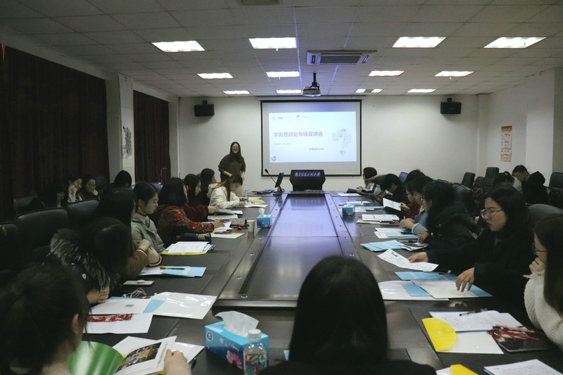为了增进大四学生对就业形势的了解,帮助他们更好地把握就业机会,999策略手机论坛版于12月25日在文德楼N402会议室举行“学而思”研后专场宣讲会。一批有意向加入教育行业的2019届毕业生参加了此次宣讲会。主讲人为“学而思”英语教师何思佳。