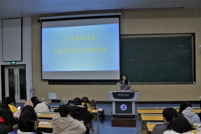 为了保证学校考试的严肃性和公平性,发挥考试对教学的检测和促进作用,营造学校良好的学风和考风,999策略手机论坛版于2018年12月18日晚在北辰楼西阶教室举行了以“诚信应考,严肃考风考纪”为主题的年级会。大会由2018级学生辅导员张潇潇老师主讲,18级全体学生参加了本次会议。