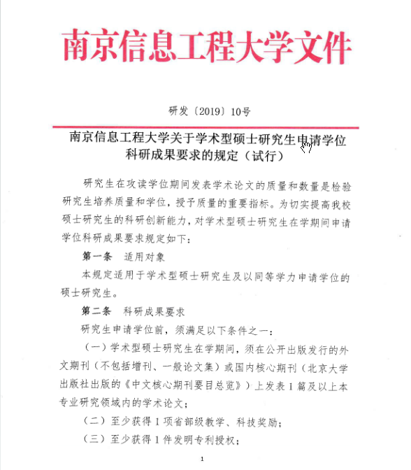 《999策略白菜网站关于学术型硕士研究生申请学位科研成果要求的规定(试行)研发[2019]10号》