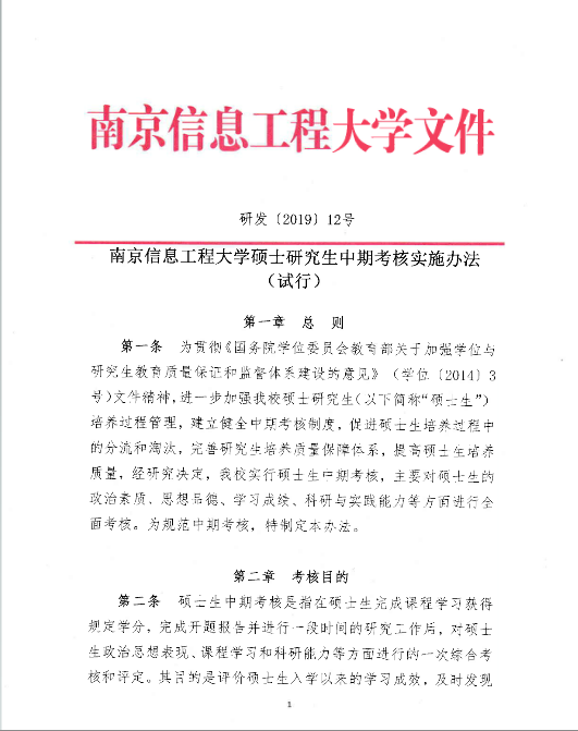 999策略白菜网站硕士研究生中期考核实施办法(试行)(研发〔2019〕12号)
