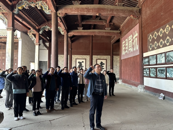 云岭新四军军部旧址位于安徽省宣城市泾县,新四军军部曾驻扎于此,完成了组建新四军的艰巨任务。由八省红军游击健儿组成的新四军由此踏上了北上抗日征途,成为华中抗日的中流砥柱,为中华民族的解放事业建立了不朽功勋。学院全体党员教师和学生党员代表在院党委副书记(主持工作)郭雨的带领下,面对鲜红的党旗,举起右拳,再一次庄严宣誓,重温入党誓词,用铮铮誓言宣示不忘初心、牢记使命的坚定决心,庄严的宣誓声响彻馆内。