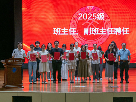 最后高盛蔷副书记宣读了2025级新生班主任、班主任助理名单,由杜玉生副院长和郑友奇副院长为他们颁发了聘书。